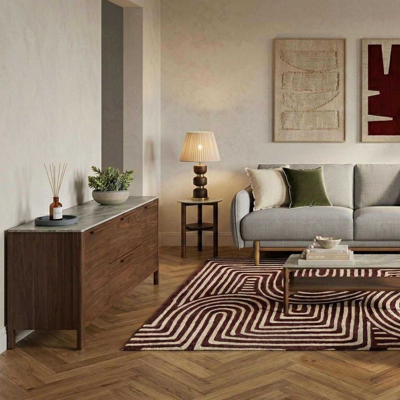 The Willow TV unit comes in a tobacco walnut finish and detailed marbled glass beige top. The unit has two doors and two drawers offering plenty of closed storage space. The drawers have soft close runners and subtle sleek black handles. This beautiful piece will compliment any style of interior and be a focal point to your living room.