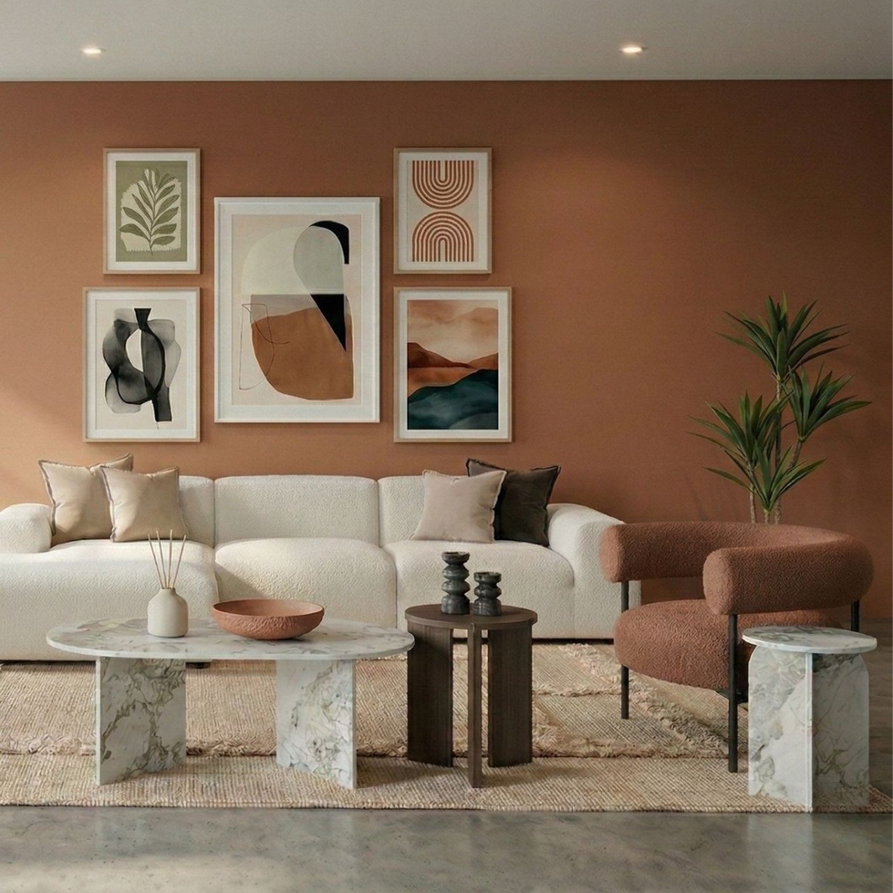 The Arco Side Table has a trendy and dynamic shape with a round top and a gently curved base. Its legs form a plus shape from two pieces which slot seamlessly into each other. Available in black with a woodgrain effect finish or in green and white marble-effect options, this side table offers versatility and style. Thoughtfully constructed with sustainable components, it aligns with eco-conscious living.